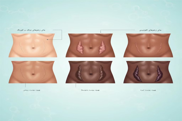 نوع و رنگ پوست نیز نقش بسزایی دارد؛ پوستهای تیره یا بسیار روشن معمولا واکنش شدیدتری به جراحی نشان میدهند.